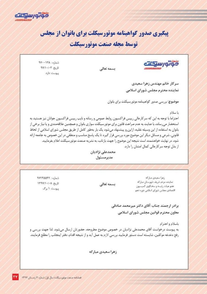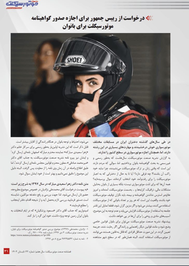 بعد از 8 سال پیگیریهای نشریه صنعت موتورسیکلت به نتیجه رسید: تصویب صدور گواهینامه موتورسواری برای زنان